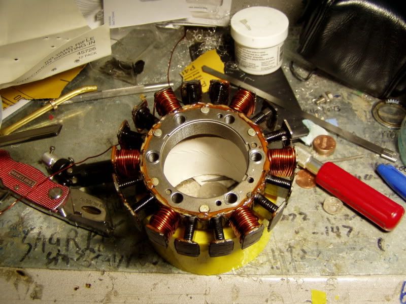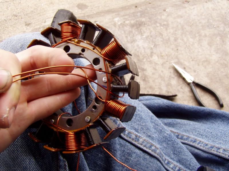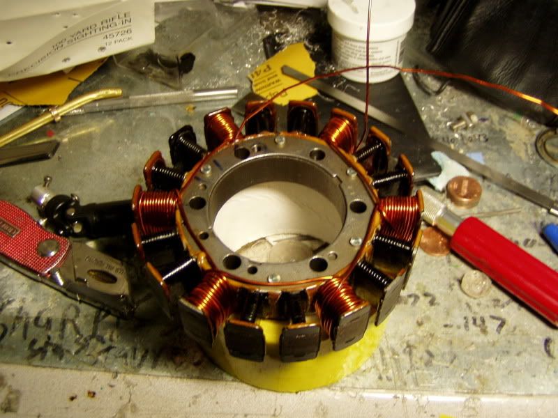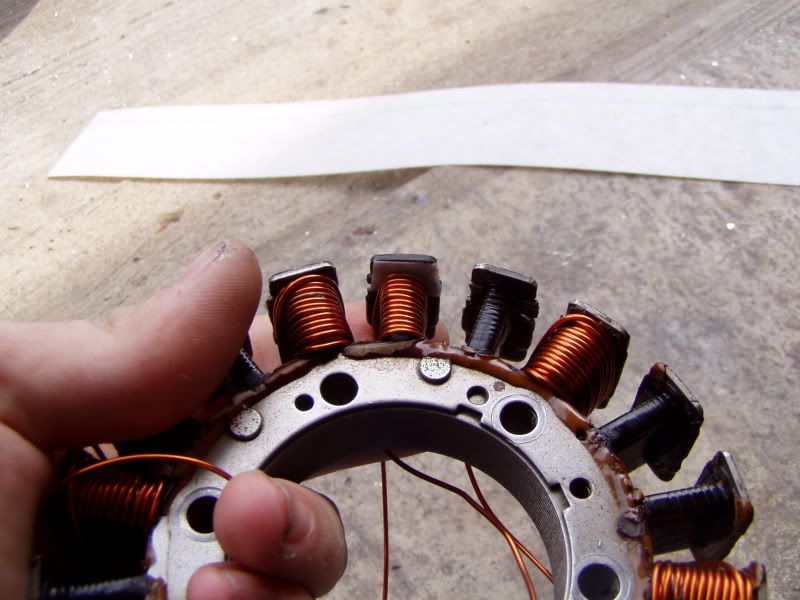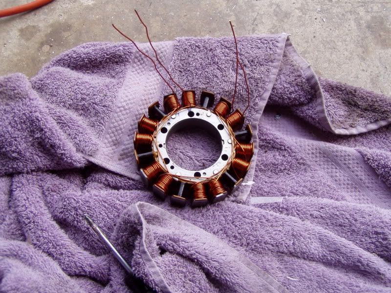 I'll post pics of the completed stator tomorrow aswell as how to terminate the winds and placement. the stator is in the bike right now, i had it out on the road yesterday and all appears to be working as it should.