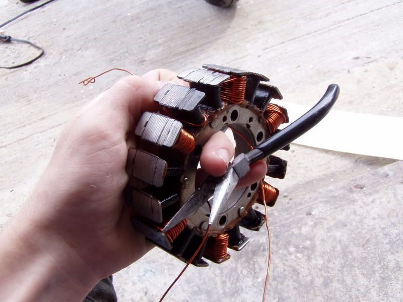 Before we get down to buisness i would first like to say that I am in no way responsible for any problems or blown parts as a result of following this tutorial, do so at your own risk! Not every bike is the same electrically and not every bike uses the same winding pattern. Do not attempt to rewind your stator unless you feel confidant in your ability to do so correctly. errors in the number of turns or placement of the poles for each phase can result in your voltage regulator/recitfier letting the magic blue smoke out.